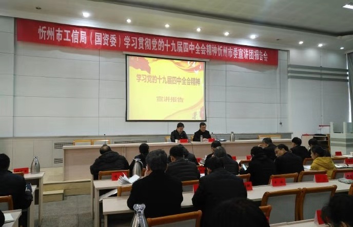 2019年11月26日上午,忻州市工信局(國資委)學(xué)習(xí)貫徹黨的十九屆四中全會精神忻州市委宣講團報告會在忻州市委黨校召開。市統(tǒng)戰(zhàn)部常務(wù)副部長鄭慧明同志在報告會上作宣講,市工信局黨委書記、局長吳瑞峰主持會議,工信局黨員干部、各監(jiān)管企業(yè)班子成員共180余人到會。公司黨委副書記陳志平、黨委委員趙培宏、王明生、邢春生等領(lǐng)導(dǎo)班子成員及相關(guān)人員參加。
