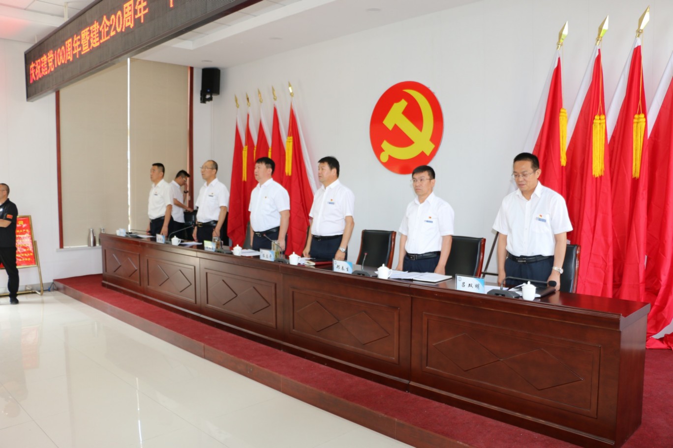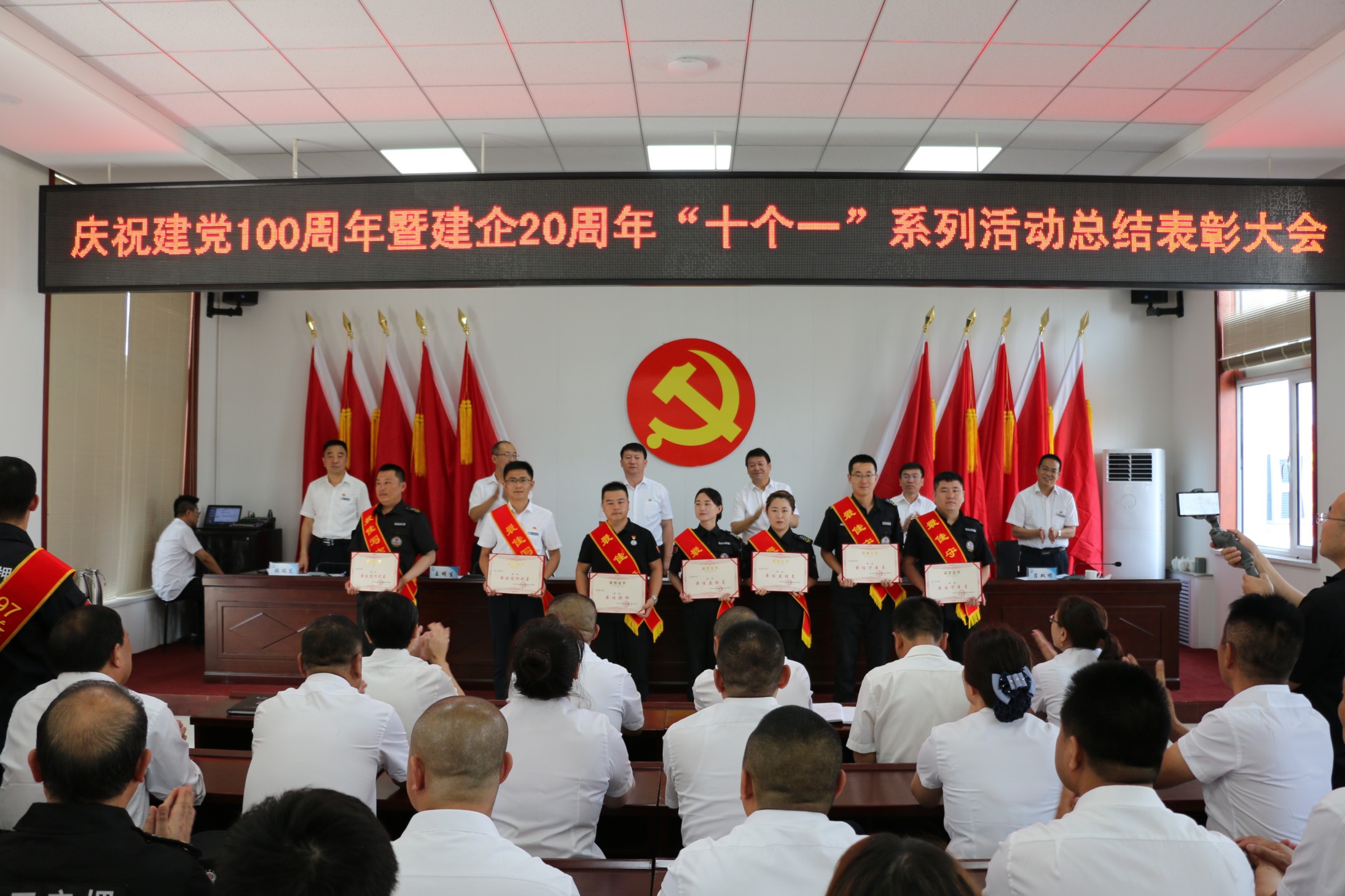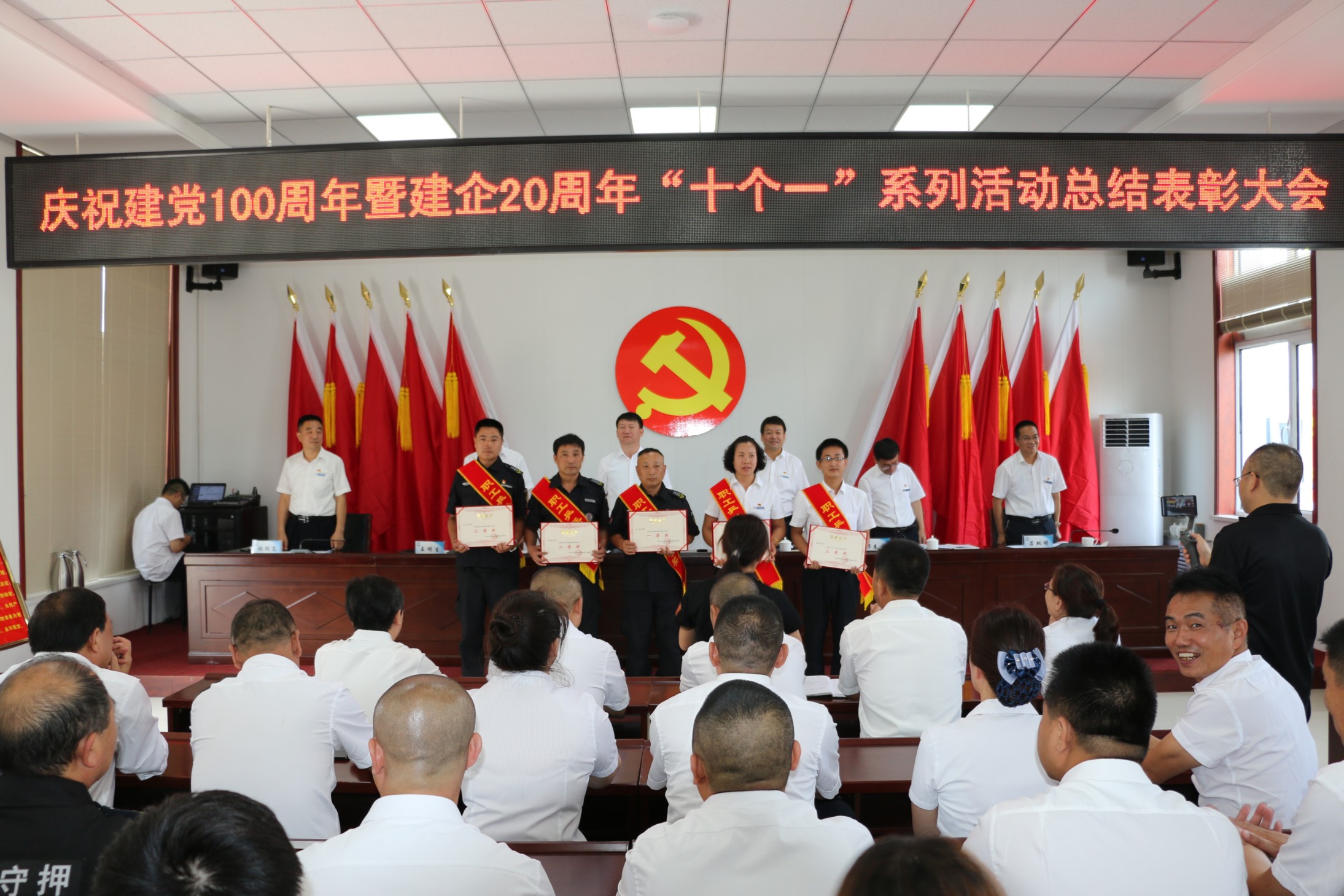 為熱烈慶祝中國共產黨成立100周年,頌揚黨的光輝歷程,謳歌黨的豐功偉業(yè),傳承黨的優(yōu)良傳統和回顧公司發(fā)展歷程,不斷激發(fā)和進一步激勵廣大黨員、干部職工統一意志、團結拼搏,創(chuàng)先爭優(yōu)的奮斗熱情,實現公司更好更快發(fā)展、全面完成全年各項目標任務,6月30日上午,中共山西大正保安服務集團有限公司委員會隆重召開慶祝建黨100周年暨建企20周年“十個一”系列活動總結表彰大會,公司班子成員、中層以上領導、受表彰的先進集體代表和先進個人、2020—2021年度新發(fā)展黨員共計160余人參加會議,大會由集團公司黨委委員、副總經理王明生同志主持。