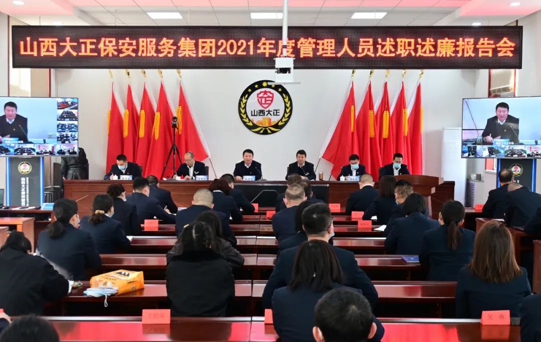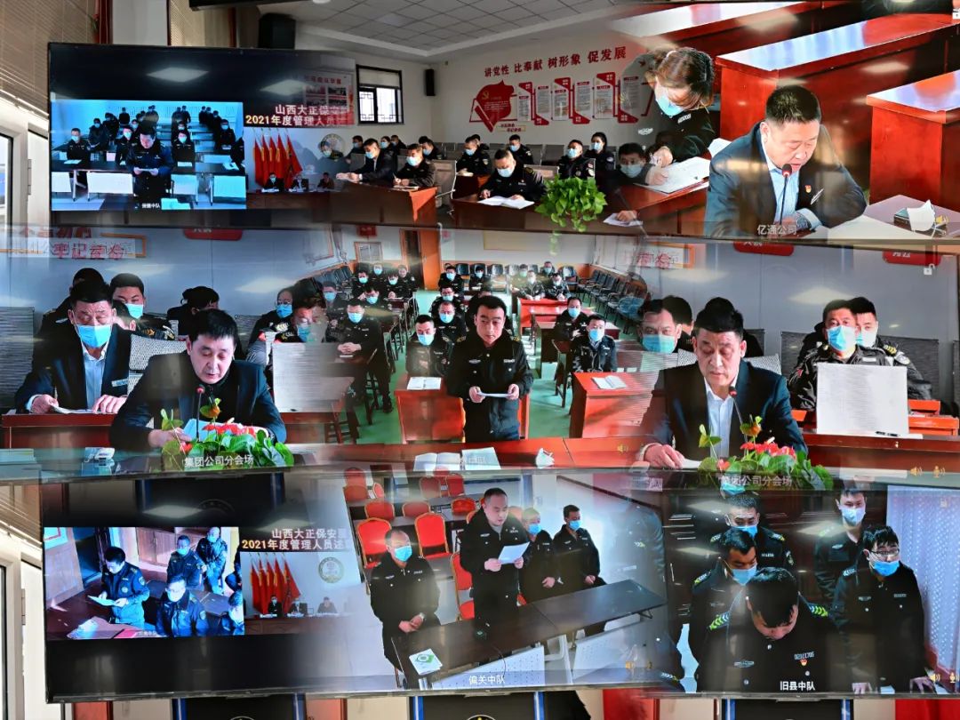 2022年1月8日-9日,山西大正保安服務(wù)集團(tuán)有限公司召開(kāi)2021年度管理人員述職述廉報(bào)告視頻會(huì)議,大會(huì)主會(huì)場(chǎng)設(shè)立在總部會(huì)議室,黨委副書記、總經(jīng)理趙培宏出席會(huì)議并作重要講話,黨委副書記、副總經(jīng)理陳志平主持會(huì)議,公司黨政領(lǐng)導(dǎo)班子成員出席會(huì)議,各部門負(fù)責(zé)人及員工代表參會(huì),各分公司、子公司、各縣市基層中隊(duì)共計(jì)21個(gè)分會(huì)場(chǎng)以視頻方式參會(huì)。