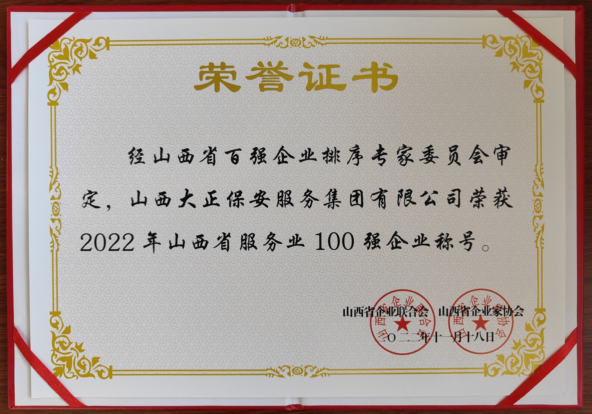 大正保安公司再度入圍“山西服務(wù)業(yè)企業(yè)百強”