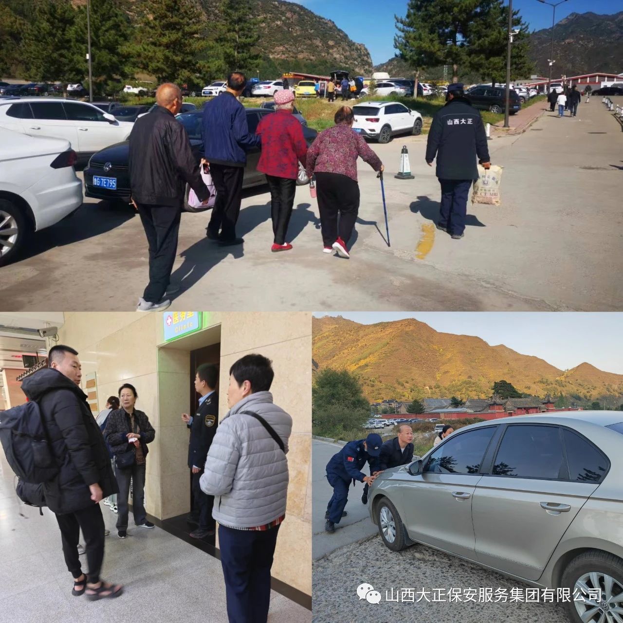 9月28日下午,山西大正保安服務(wù)集團(tuán)有限公司抽調(diào)精兵強(qiáng)將200余人,開赴五臺(tái)山風(fēng)景區(qū)執(zhí)行勤務(wù),全體出勤隊(duì)員精神煥發(fā),士氣高昂,整裝出發(fā),他們舍棄“中秋”與家人的團(tuán)聚,放棄“雙節(jié)”假日休息的機(jī)會(huì),以大局為重,忠誠(chéng)奉獻(xiàn),擔(dān)當(dāng)作為。當(dāng)晚指揮部與五臺(tái)山風(fēng)景名勝區(qū)管委會(huì)協(xié)調(diào)溝通,確定執(zhí)勤崗位及人數(shù),9月29日全員上崗,開始為期一周的安保勤務(wù)工作。執(zhí)勤隊(duì)員24小時(shí)不間斷對(duì)游客、車輛進(jìn)行指導(dǎo)、指引,確保游客行得順、玩得暢。10月5日上午,此次安保勤務(wù)工作圓滿完成。