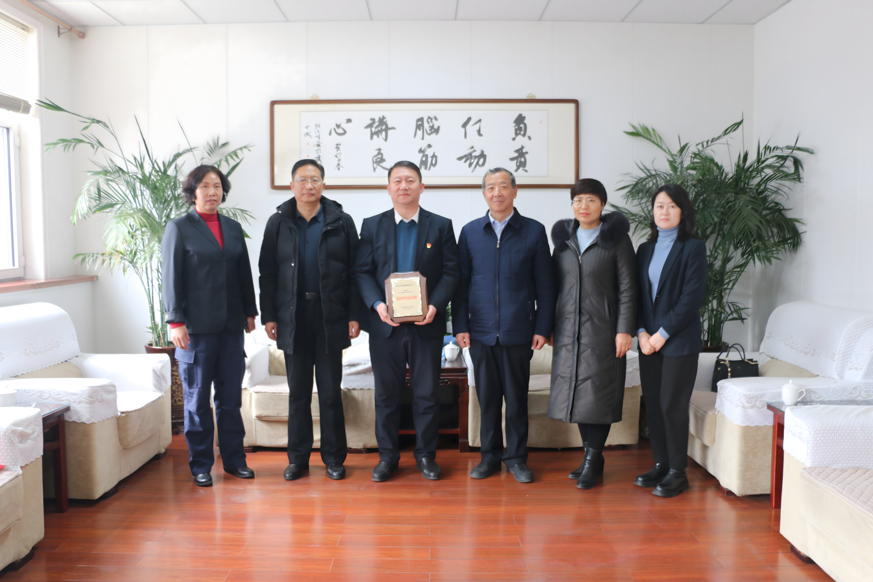 1月30日,受忻州市退役軍人事務(wù)局黨組書(shū)記、局長(zhǎng)張耀民委托,忻州市退役軍人事務(wù)局黨組成員、副局長(zhǎng)張培觀、四級(jí)調(diào)研員王樹(shù)康、三科科長(zhǎng)張承香蒞臨公司,為集團(tuán)公司送上由山西省退役軍人事務(wù)廳頒發(fā)的“2023年度山西退役軍人就業(yè)合作企業(yè)光榮榜”獎(jiǎng)牌。