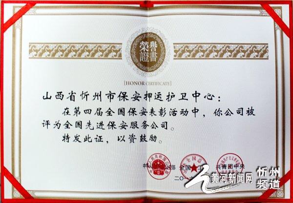 忻州市保安押運(yùn)護(hù)衛(wèi)中心榮獲“第四屆全國(guó)先進(jìn)保安服務(wù)公司”稱號(hào)