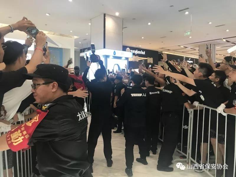 2018年7月15日,美國(guó)NBA著名球星德維恩-韋德“2018年中國(guó)行”品牌代言簽售會(huì)第三站在省會(huì)太原茂業(yè)天地隆重舉行,由于韋德作為籃球明星偶像,在中國(guó)知名度、關(guān)注度、影響力較高,深受青少年球迷的喜愛(ài),粉絲眾多,加之活動(dòng)現(xiàn)場(chǎng)又在人員密集的商場(chǎng)內(nèi)舉辦,不確定因素增猛,安保難度加劇,為確;顒(dòng)安全順利進(jìn)行,按照太原市公安局的安排部署,太原保安服務(wù)有限公司抽調(diào)300余名保安員承接了此次安保任務(wù)。