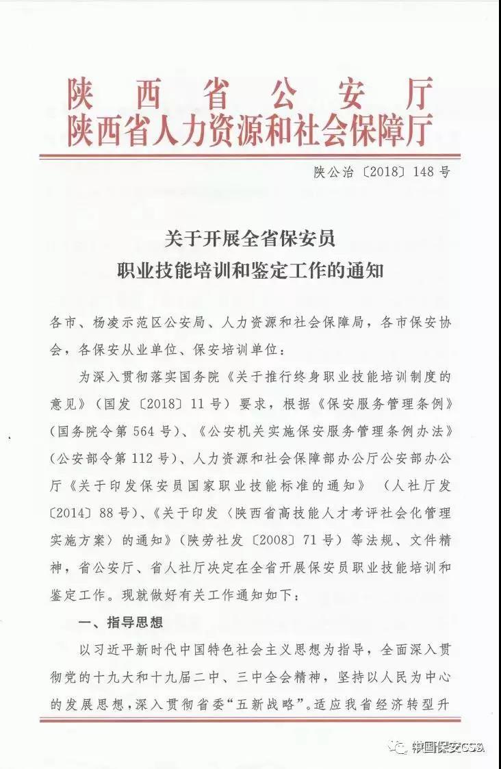 陜西省出臺(tái)《關(guān)于開(kāi)展全省保安員職業(yè)技能培訓(xùn)和鑒定工作的通知》