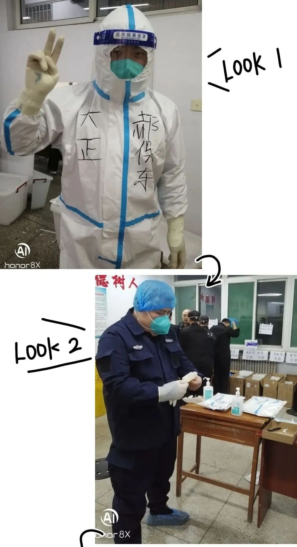 11月16日晚上6點,是他們第一次穿著防護服進入隔離區(qū)為隔離人員高風險近距離服務。關向宇同志身體高大肥胖,穿脫防護服要比常人艱難的多,為盡職責完成任務,自己克服困難,知難而上,跨入隔離區(qū)。二人在隔離區(qū)服務近四個小時,出來時滿身流著汗水,第二天兩人都發(fā)生了身體不適狀況,身體發(fā)冷、咳嗽等癥狀,但是他們沒有畏縮,提振精神,繼續(xù)馬不停蹄的干活,該干啥干啥,該做什做什,忙里又忙外。