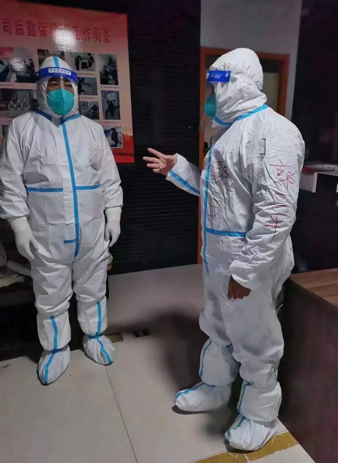 11月20日,對于堅守在師院東區(qū)的大正來說,也是一個特別的日子,因?yàn)榻裢,隨著隔離轉(zhuǎn)運(yùn)人員集中隔離觀察期時間已到,有1017名的集中隔離人員根據(jù)疫情防控要求可以轉(zhuǎn)運(yùn)回各自家中進(jìn)行居家隔離觀察,億通公司經(jīng)理郭二平在接到協(xié)同醫(yī)護(hù)人員轉(zhuǎn)運(yùn)隔離人員任務(wù)后,第一時間組織、部署隊員們投身到這次任務(wù)中,工作區(qū)的18名同志全員參與。出發(fā)前,經(jīng)理郭二平召開了動員會,一遍遍叮囑隊員們要如何做好防護(hù),要如何以一個大正人的形象在保護(hù)自己的同時保質(zhì)保量的完成使命,就像一個家庭的家長一樣,挨個檢查隊員們的防護(hù)服是否都按要求穿著規(guī)范,從晚上7點(diǎn)鐘到次日5點(diǎn)鐘,一直和隊員們并肩作戰(zhàn),直至回到師院東區(qū)工作區(qū)隊員們都回到各自宿舍,他才回去安心睡覺,在本就悶熱的防護(hù)服下,隊員們都是個個滿頭大汗,汗?jié)窦贡,甚至有個別隊員出現(xiàn)胸悶、惡心等癥狀,但都沒有一個人抱怨,沒有一個人思想動搖,這種滋味我們難以感同身受,只能說,在前方負(fù)重前行的你們是好樣的,是我們的驕傲和標(biāo)桿。