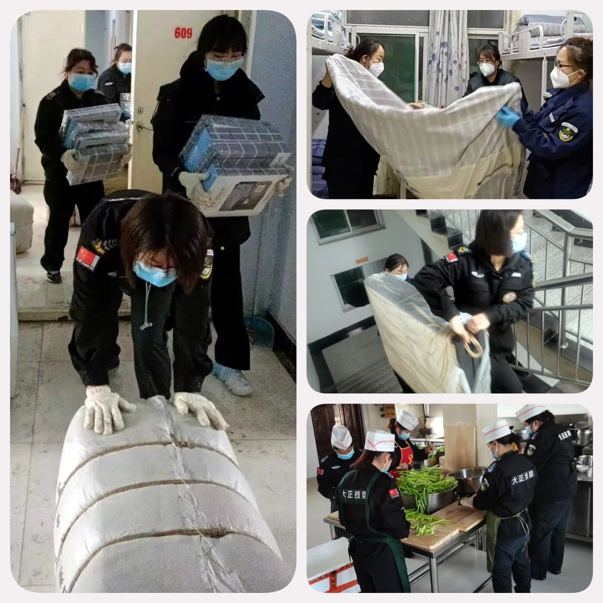 在這場沒有硝煙的戰(zhàn)爭中,大正的鏗鏘玫瑰們聽從公司指揮、勇毅“逆行”。在接到抗疫任務(wù)的第一時間便趕回工作崗位,得知需要24小時備戰(zhàn)執(zhí)勤時,她們和其他男同志一樣默默接受,沒有任何怨言。雖然她們已身為人妻人母,但是為了疫情防控的需要,她們選擇了和家人暫時的分離,無法顧及家里人的生活,一心抗疫。她們有的是辦公室人員、有的是監(jiān)控人員、有的是技防人員、有的是勤務(wù)指揮中心人員,她們都是普通的工作人員,家中有年邁的父母、年幼的孩子,有付出,也有虧欠......但面對疫情,她們做出了相同的選擇——那就是挺身而出,迎難而上,她們說:“既然選擇作為大正的保安,我們就要像其他男同事一樣沖鋒陷陣。”她們用實際行動詮釋著大正人的奮勇向前,彰顯了堅韌不拔的巾幗風(fēng)采。
