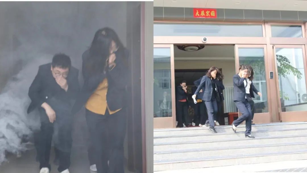 隨著煙霧的升起、消防報警聲的響起,各樓層人員快速、有序地捂住口鼻、彎下身體,快步有序的撤離到辦公樓前安全地帶,隨后,安全保衛(wèi)部清點人數(shù),確保無一人遺漏,整個演練過程緊張有序。演練人員沒有絲毫的慌亂,達到了預期的效果。