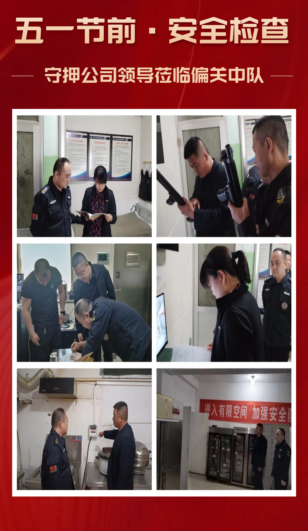 為貫徹落實集團公司《關(guān)于做好2024年“五一”勞動節(jié)期間安保工作的通知》的各項工作安排及要求,集團公司安全保衛(wèi)部及各子分公司負(fù)責(zé)人認(rèn)真組織并開展了節(jié)前安全大檢查大整改,全面排查各駐地配套設(shè)施、執(zhí)勤駐點及公司辦公大樓的安全風(fēng)險和隱患,以杜絕所屬工作區(qū)域內(nèi)各類安全事故的發(fā)生,進一步加固客戶單位的安全防護網(wǎng),為即將到來的“五一”勞動節(jié)營造一個安全、穩(wěn)定、和諧的氛圍。