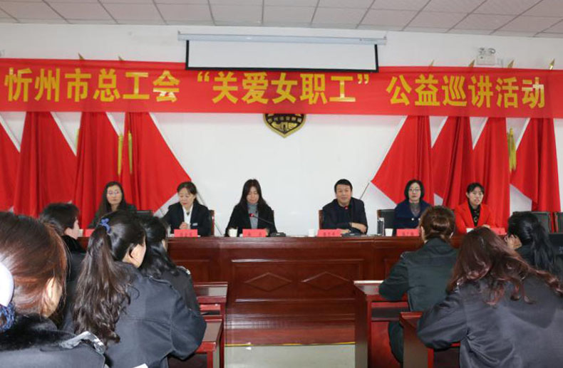 在“三八”婦女節(jié)來臨之際,3月5日上午,忻州市總工會生活保障女職工部部長郝華、工會保障部李美英和秦辛一行帶著市總工會對我公司全體女職工的關(guān)愛,在我公司西院三樓會議室舉辦“關(guān)愛女職工”公益巡講活動。公司黨委書記陳志平和工會副主席張金華陪同。