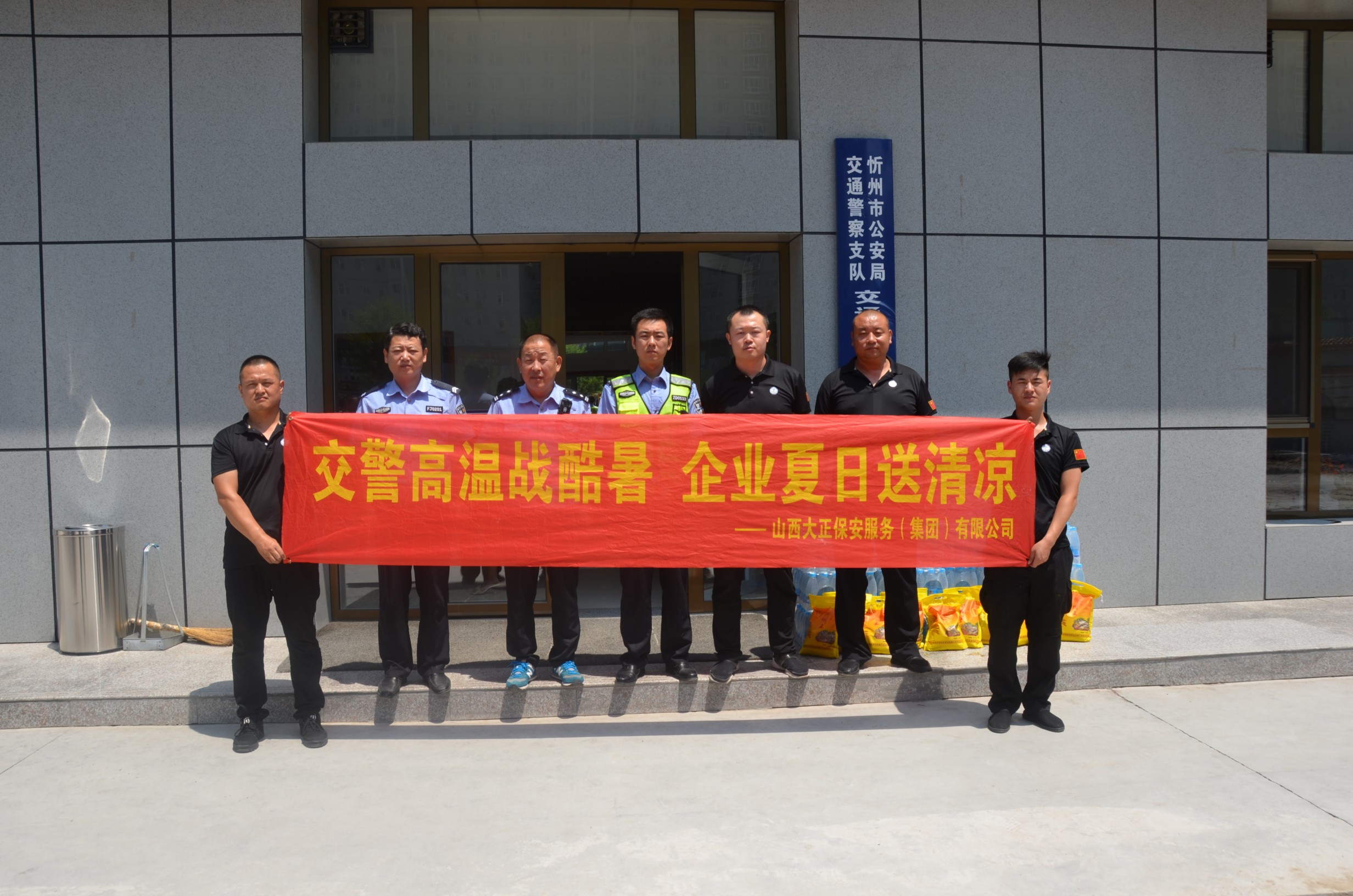 近日,根據(jù)公司統(tǒng)一安排,裝備保障服務(wù)中心牽頭,組織守押公司各基層中隊,前往忻州市區(qū)及各縣市一線交警單位,為烈日下執(zhí)勤的交警一線民警送去降溫解暑的礦泉水、綠豆、小米等慰問物資。
