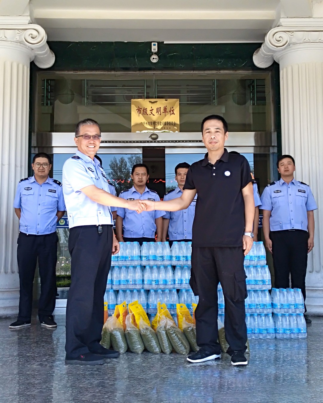 本次山西大正保安服務(wù)(集團(tuán))有限公司共計慰問34家基層交警,送去礦泉水1560件、小米340袋、綠豆340袋。