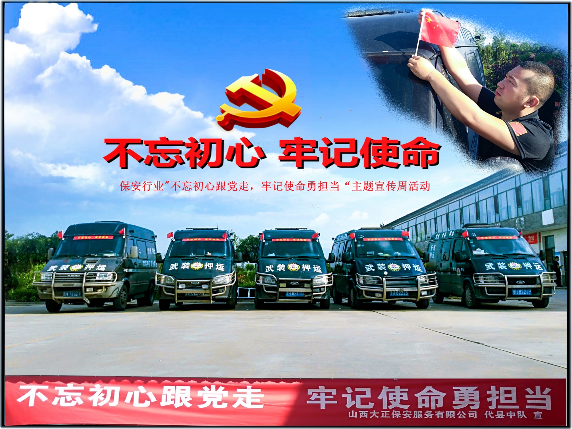 忻州市保安行業(yè)“不忘初心跟黨走、牢記使命勇?lián)?dāng)”主題宣傳周活動(dòng)暨服務(wù)國(guó)慶安保工作誓師儀式正式啟動(dòng)以來,公司各基層單位按照忻州市公安局、忻州市保安協(xié)會(huì)以及公司的安排部署,立即行動(dòng),積極開展“不忘初心跟黨走、牢記使命勇?lián)?dāng)”主題宣傳周活動(dòng),統(tǒng)一思想認(rèn)識(shí)、提高政治站位,進(jìn)一步增強(qiáng)使命感、責(zé)任感和緊迫感,創(chuàng)新工作思路、拓寬活動(dòng)形式、豐富活動(dòng)內(nèi)容、深化活動(dòng)內(nèi)涵,開展安全防范宣傳、志愿服務(wù)和崗位練兵等工作,用實(shí)際行動(dòng)為“平安忻州”建設(shè)添磚加瓦,為“二青會(huì)”成功舉辦增光添彩,為新中國(guó)70周年大慶保駕護(hù)航。