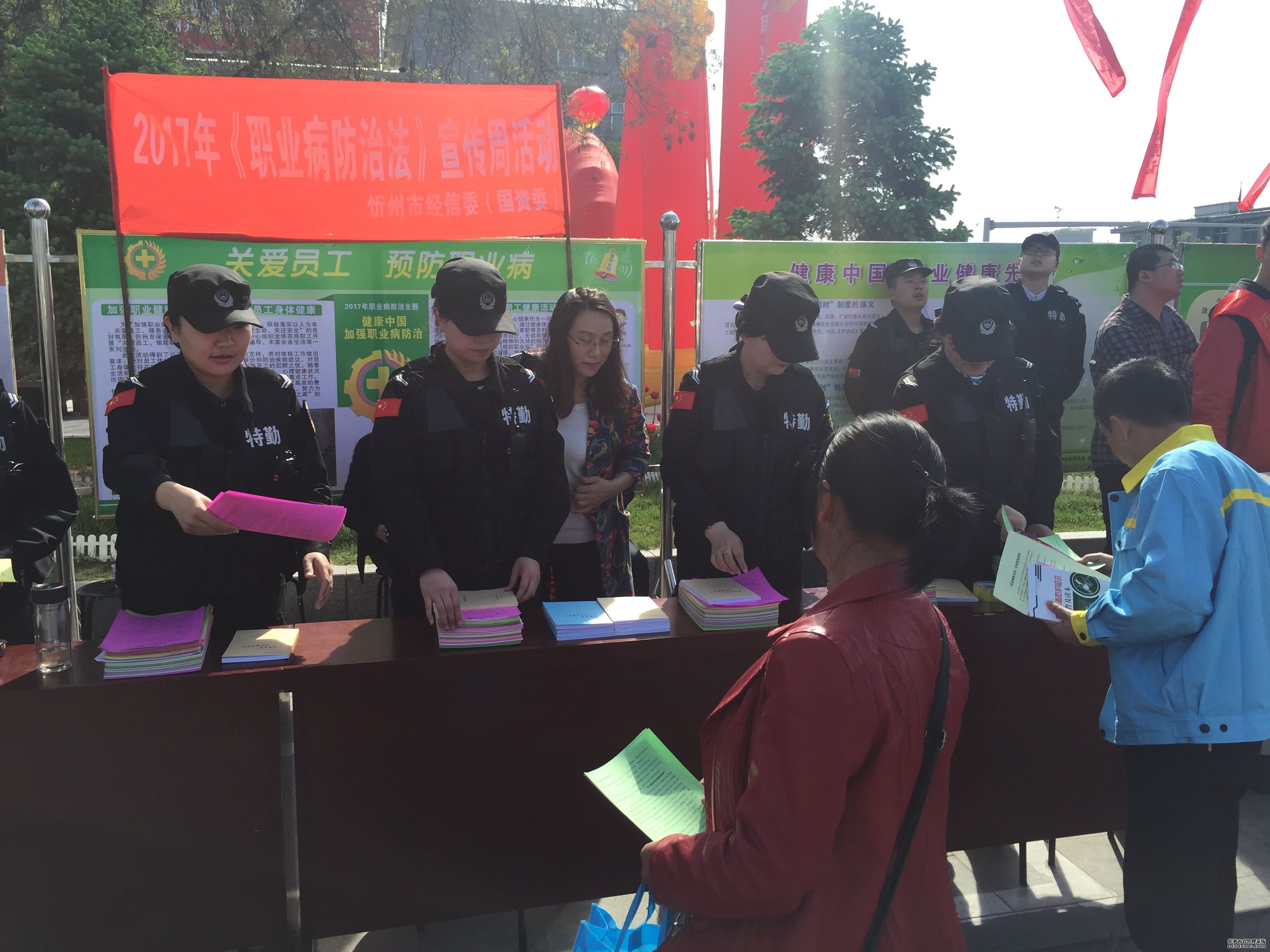 此次活動由市安全生產(chǎn)委員會、市經(jīng)信委等六家單位主辦,副市長范建民出席啟動儀式并講話,市總工會、安監(jiān)局、發(fā)改委、衛(wèi)計委、工商局、人社局等多家單位以及企業(yè)代表參加了活動。儀式結(jié)束后,我們在宣傳區(qū)向市民發(fā)放宣傳資料和宣傳書籍,并向熱心市民講解職業(yè)病的危害性以及防治的必要性。臨近夏天的天氣已然很熱,我們穿著厚重的制服站在太陽下,汗水悄悄地順著臉頰滑下。我們的精神風(fēng)貌得到了國資委領(lǐng)導(dǎo)的肯定,良好的形象受到了市民及其他活動單位的贊揚。